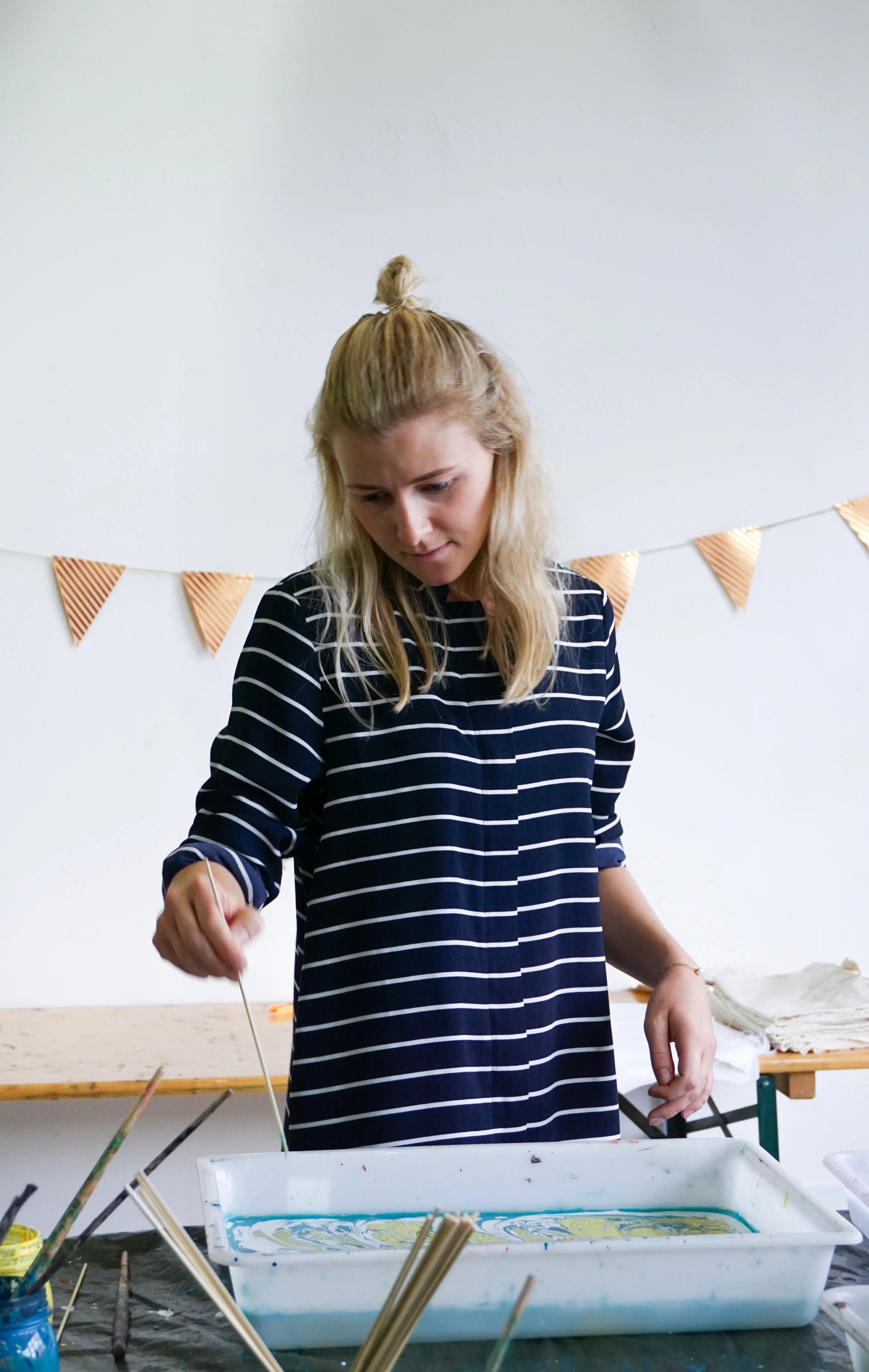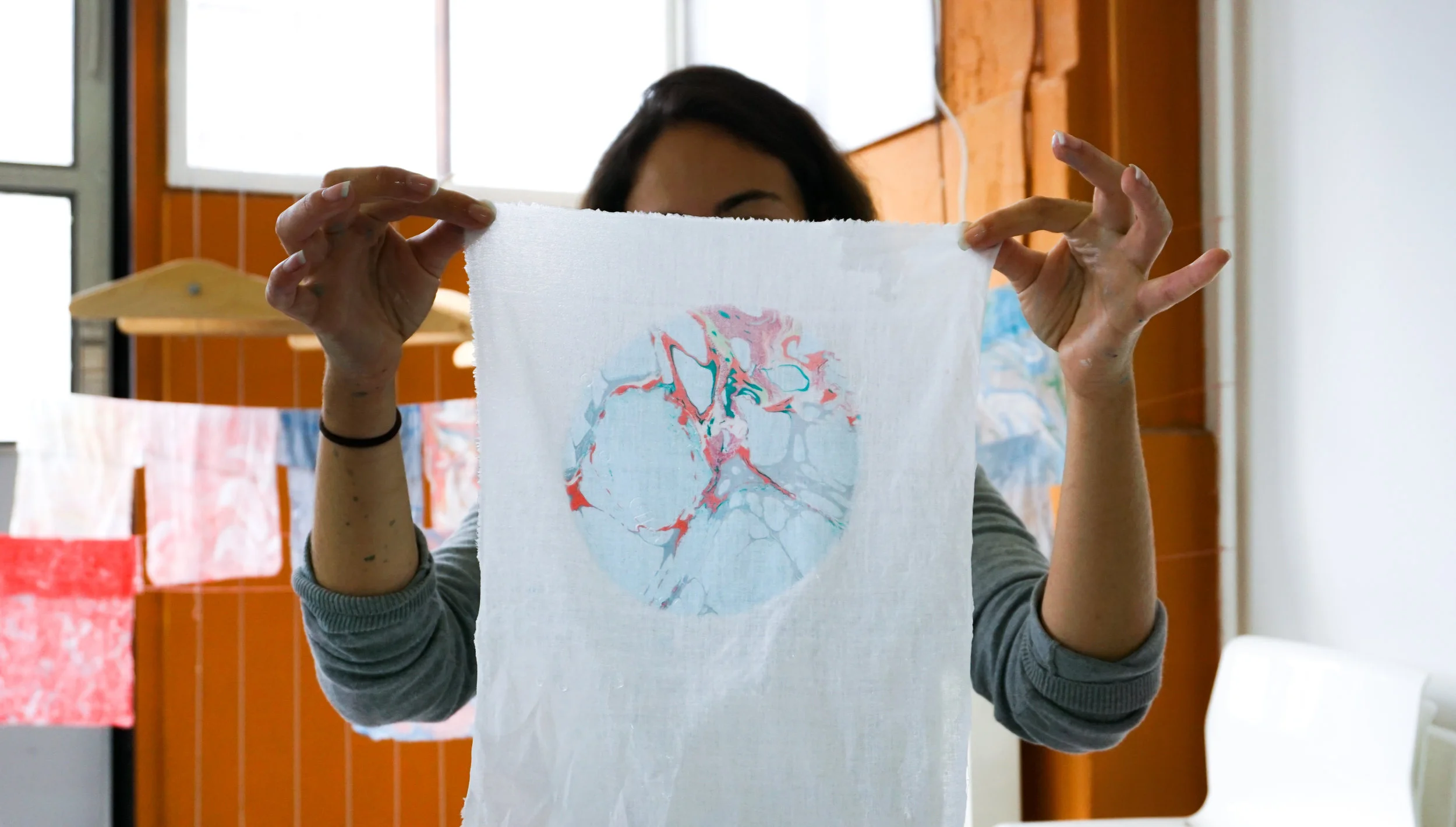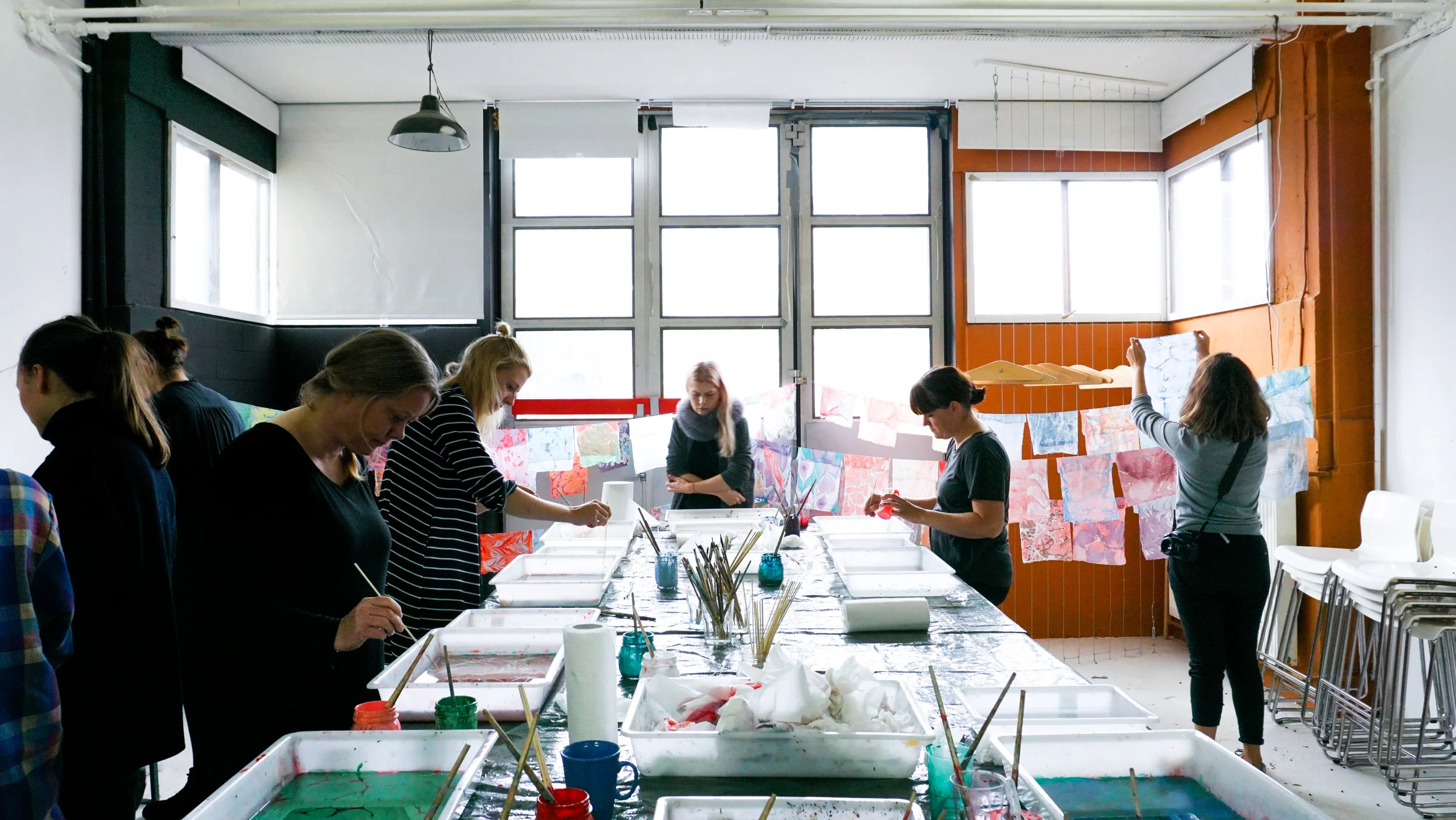 On Sunday 9th of October, MarbleMatter and I hosted our sixth workshop together in Studio 22, Fabrikken. We were full-house, with a total of 10 participants. As usual, we started out the workshop with breakfast, coffee and tea whilst getting introduced to the history of marbling, the materials and the process.