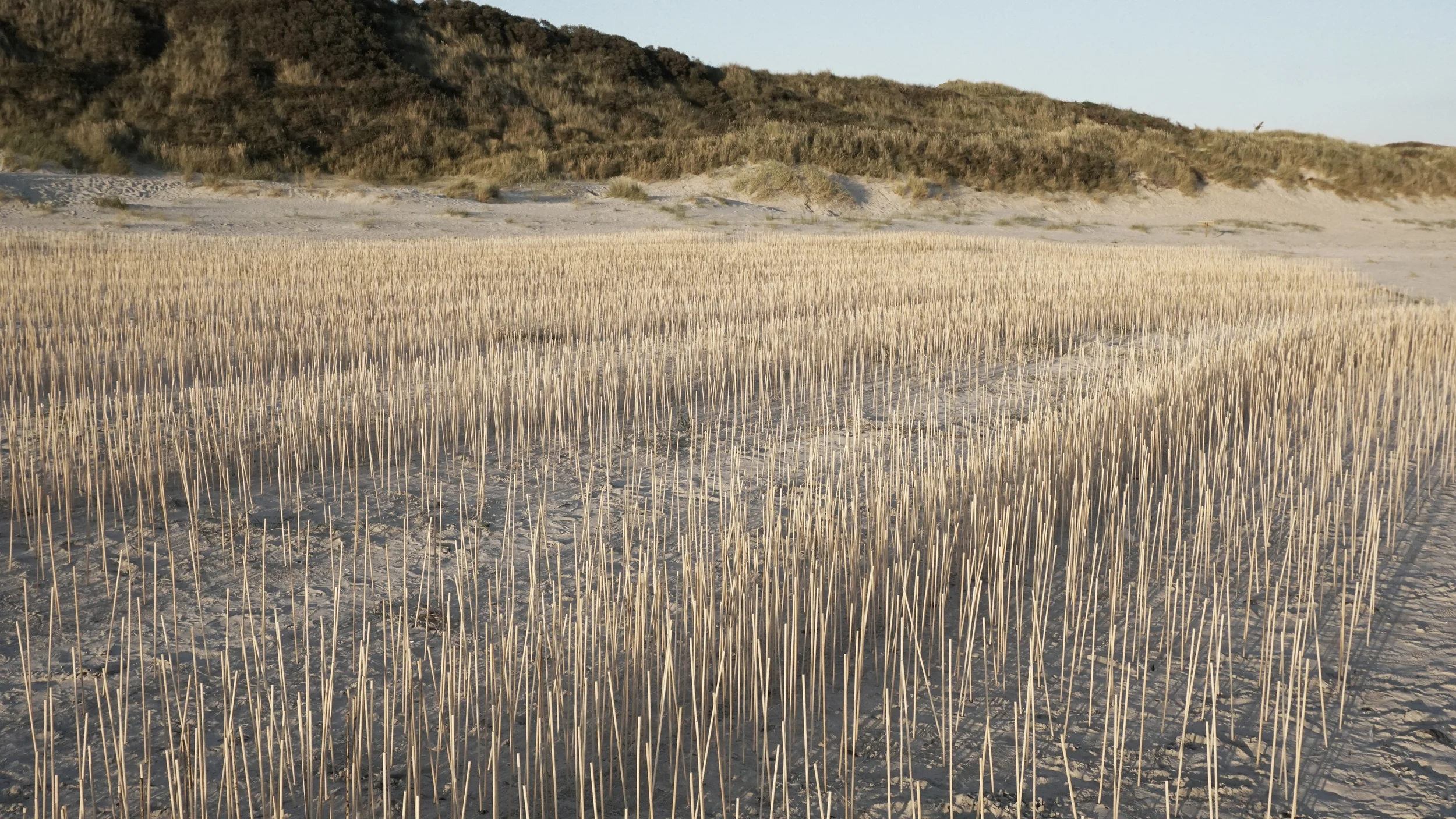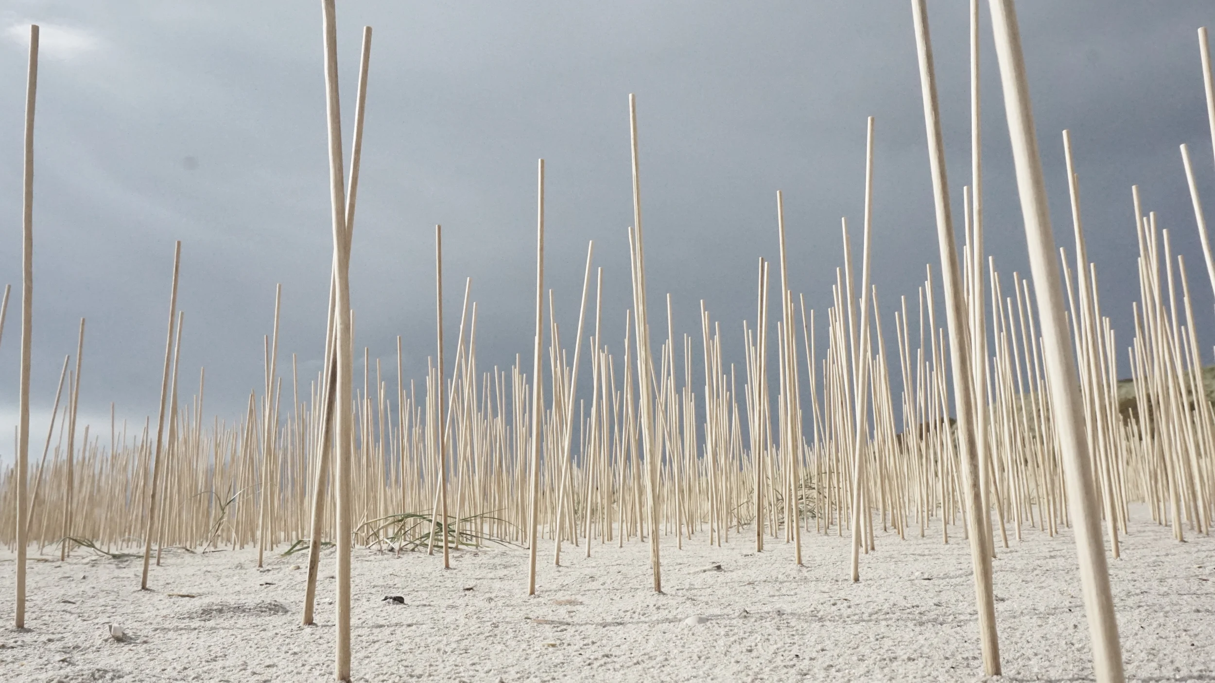 Looking through Woodland, a temporary landscape at the shore of the Wadden-sea in Blåvand Denmark.