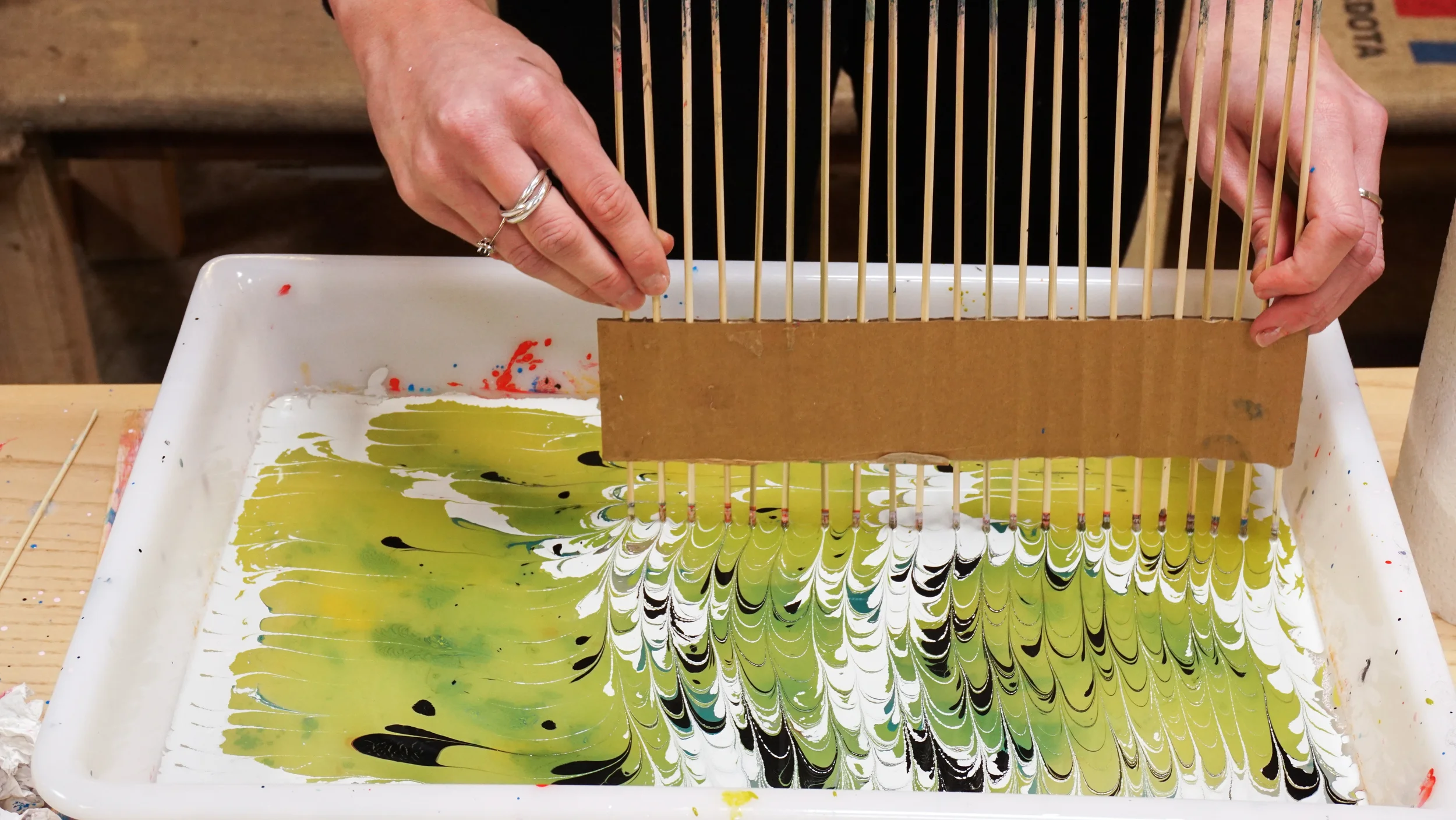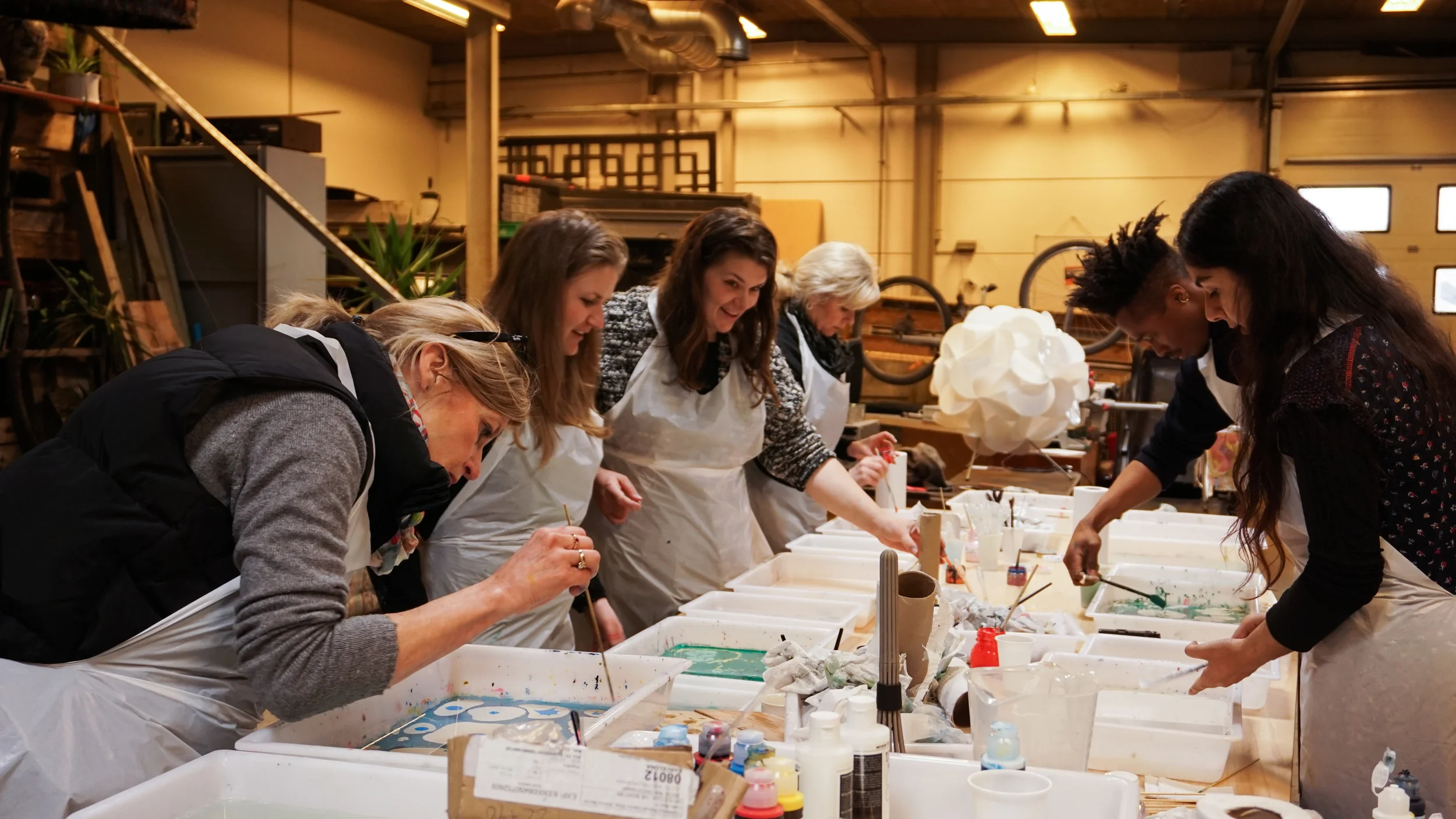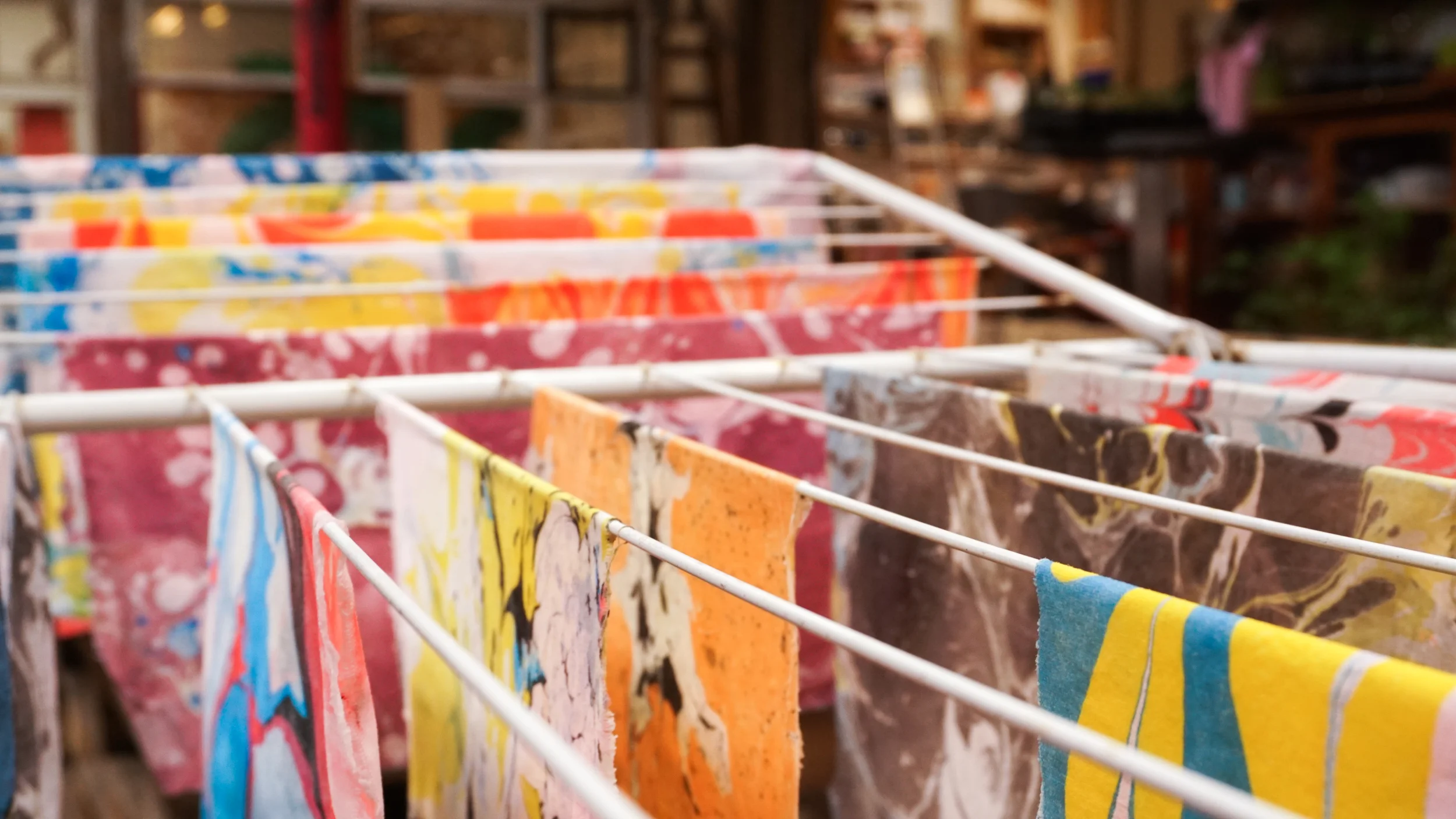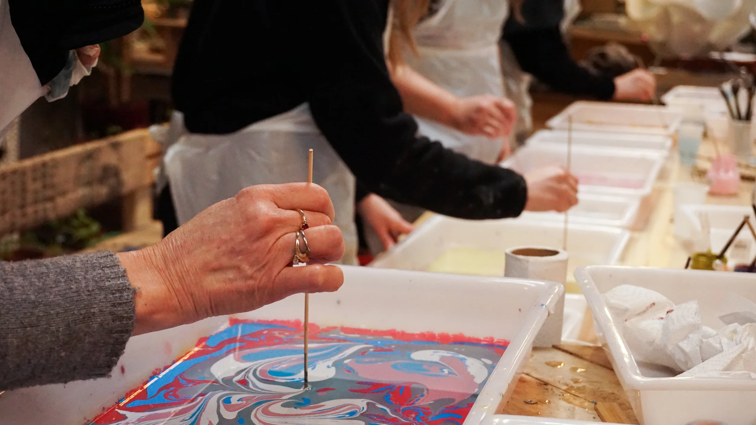In April 2016, MarbleMatter and myself hosted our first workshops together - a collaboration we have been wanting to get on with since last summer, when we started marbling together in Barcelona. The two workshops took place in Guldminen Kbh, an old warehouse located in Sydhavnen, Copenhagen. This is a fantastic space with an up-cycling concept behind it. The location and using second-hand textiles for the events went perfectly hand in hand.