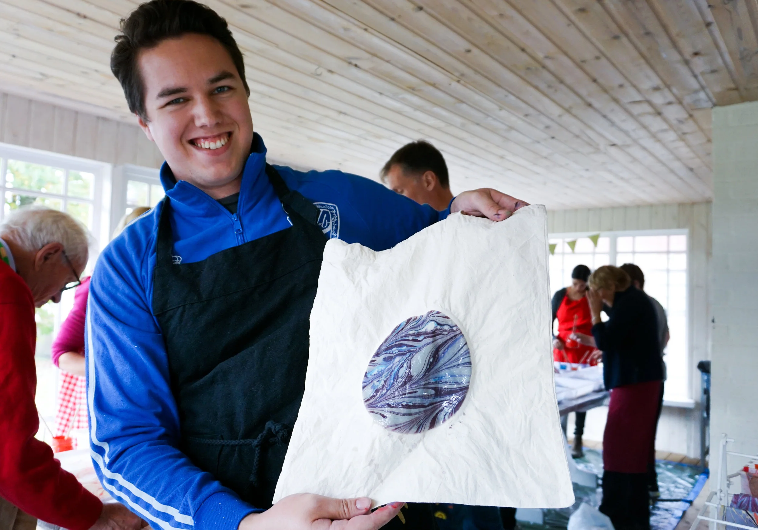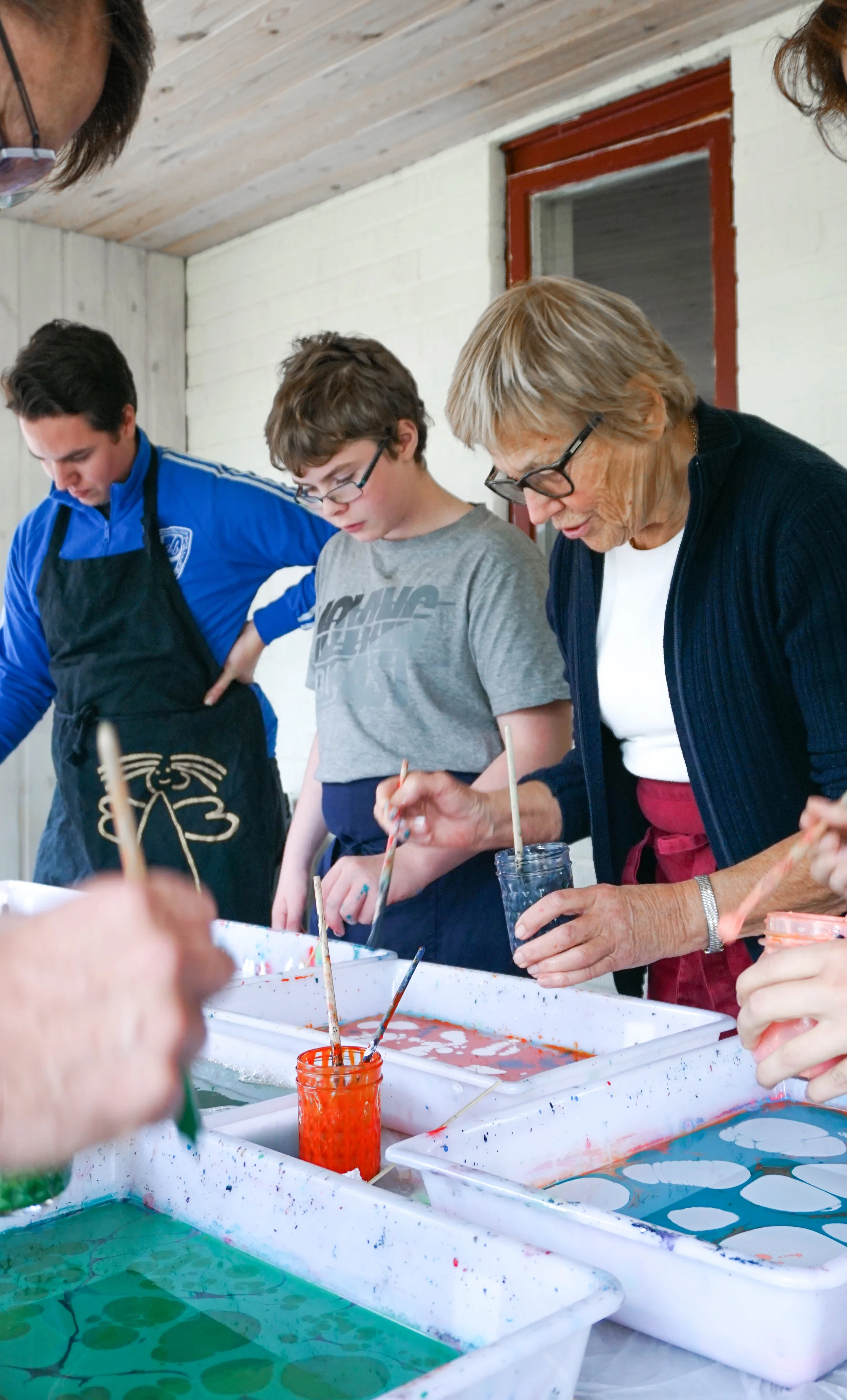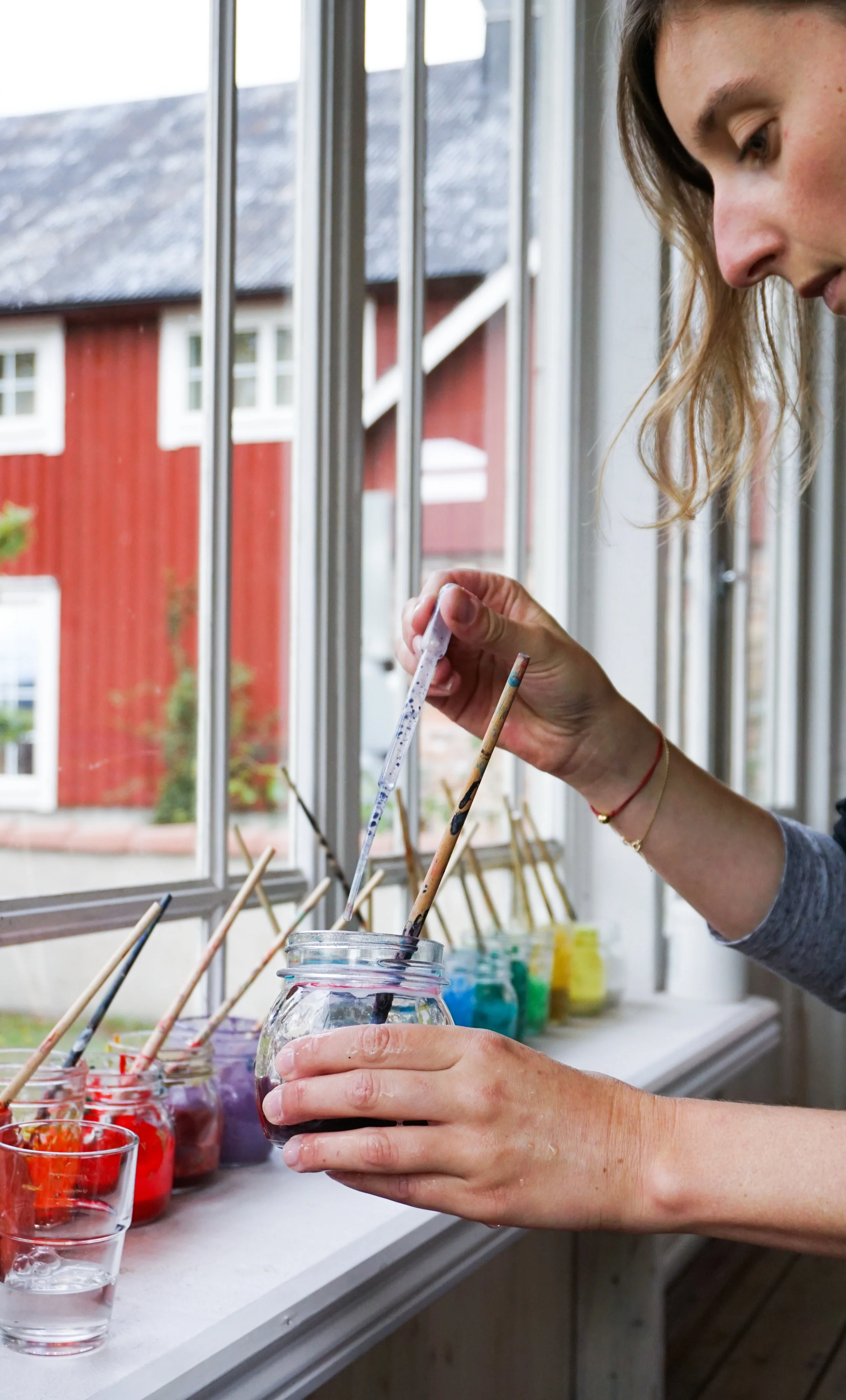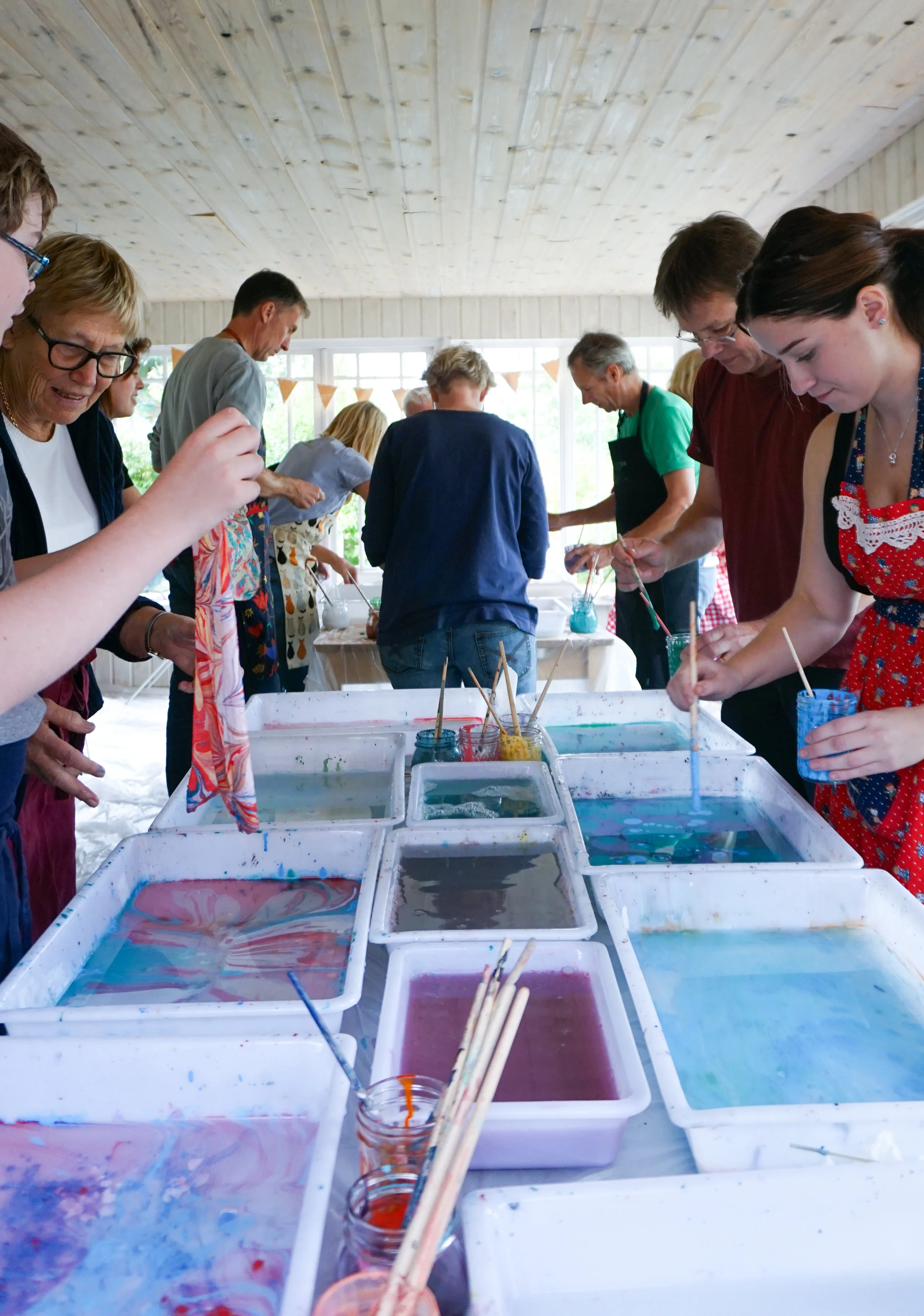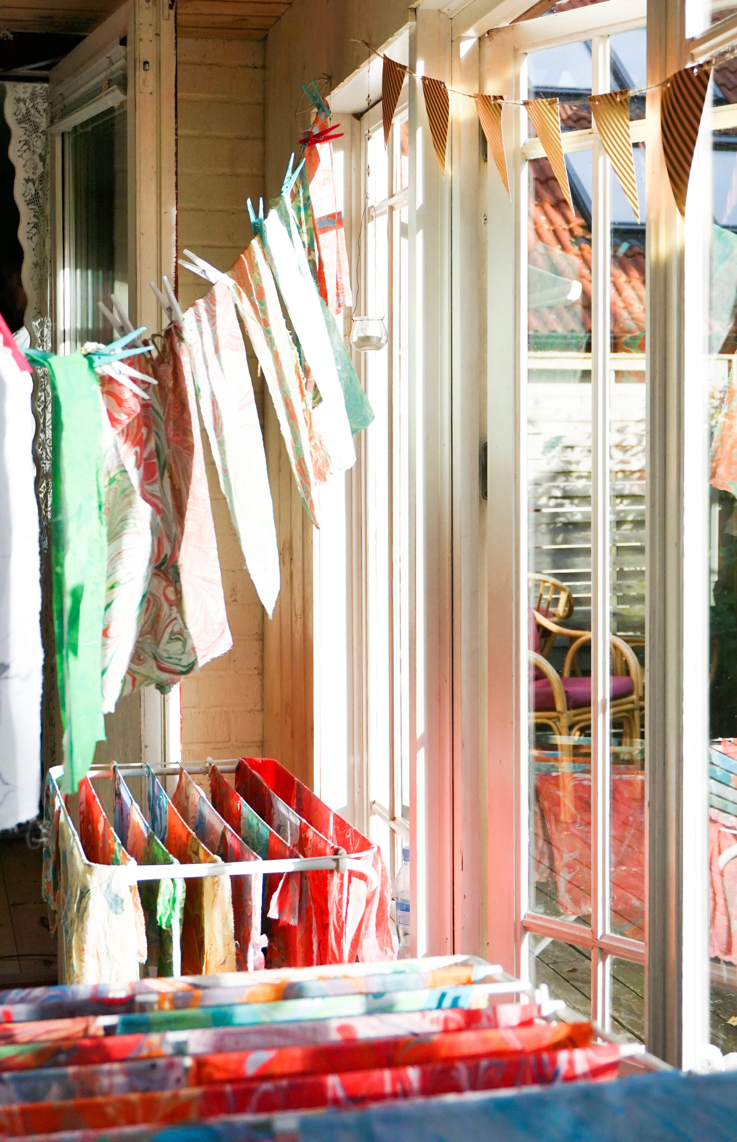 The workshop took place in Lanthotell Lögnäs Gård just outside Laholm in Sweden. The villa had this lovely patio with views to the garden and to the fields nearby. MarbleMatter and I had a total of 15 participants, in the ages from 3 to 84 years.