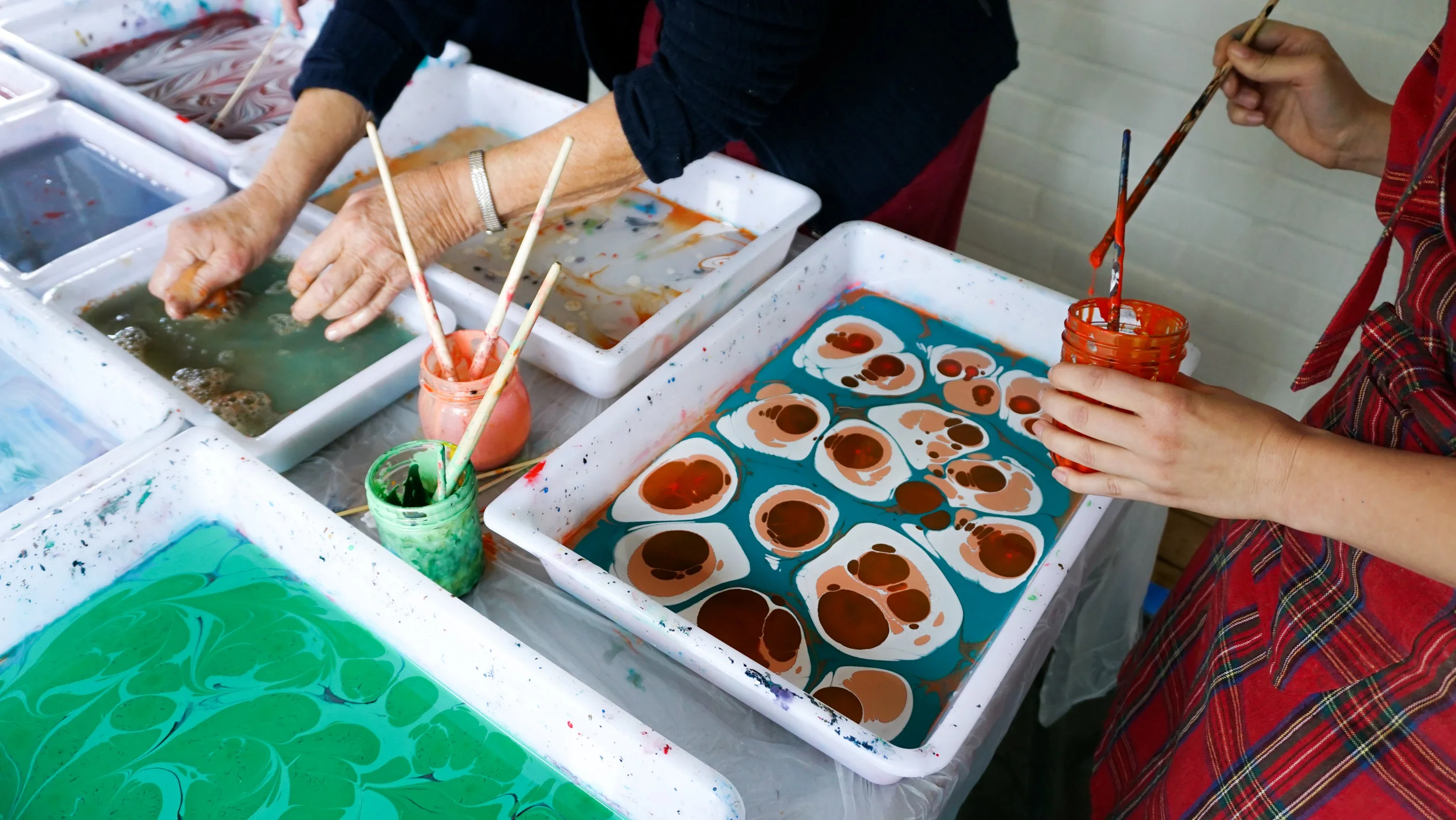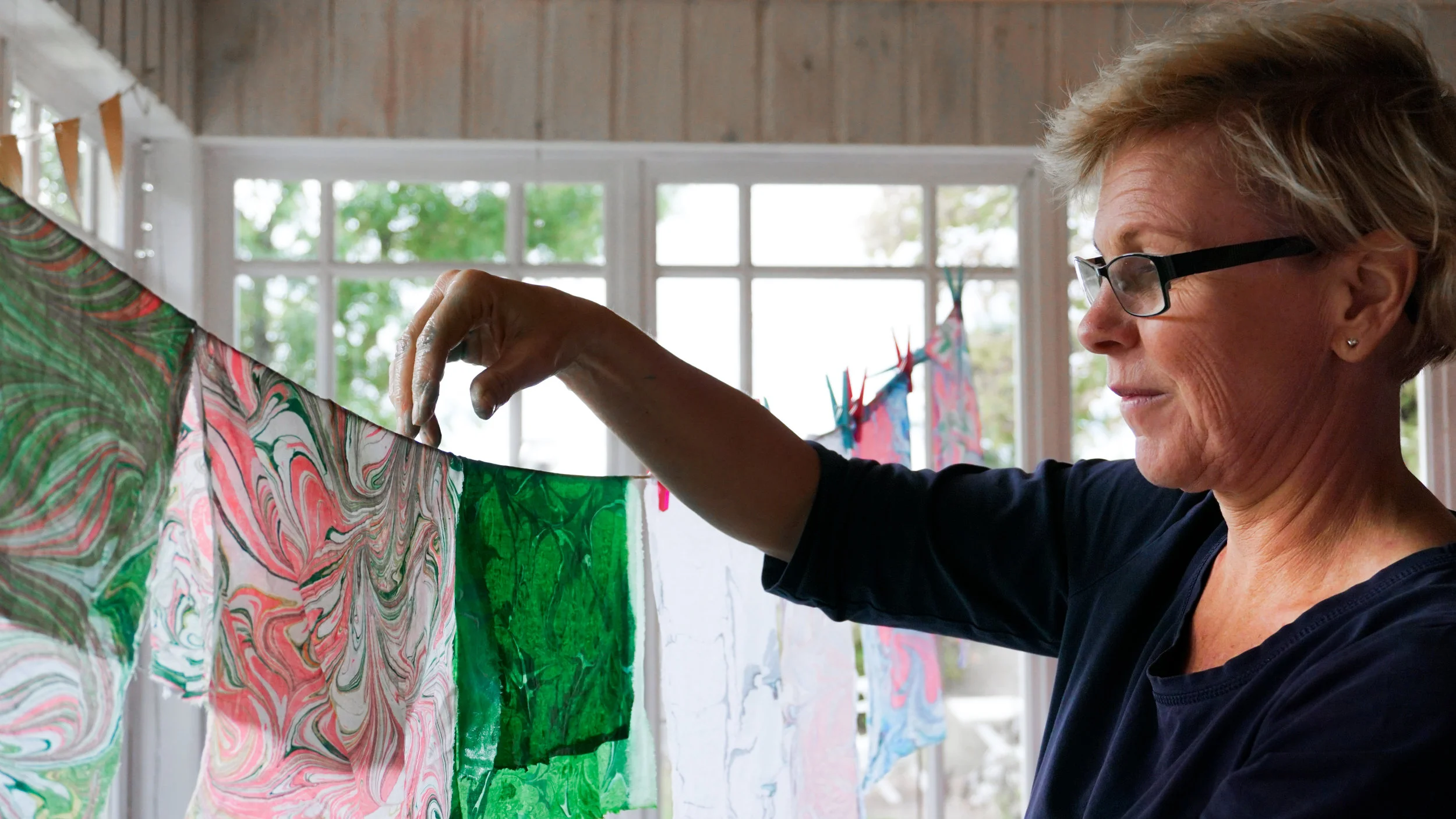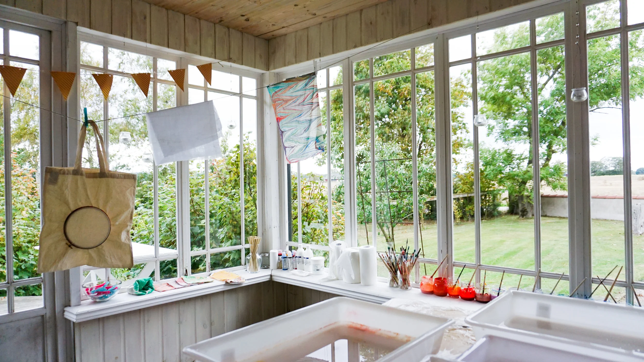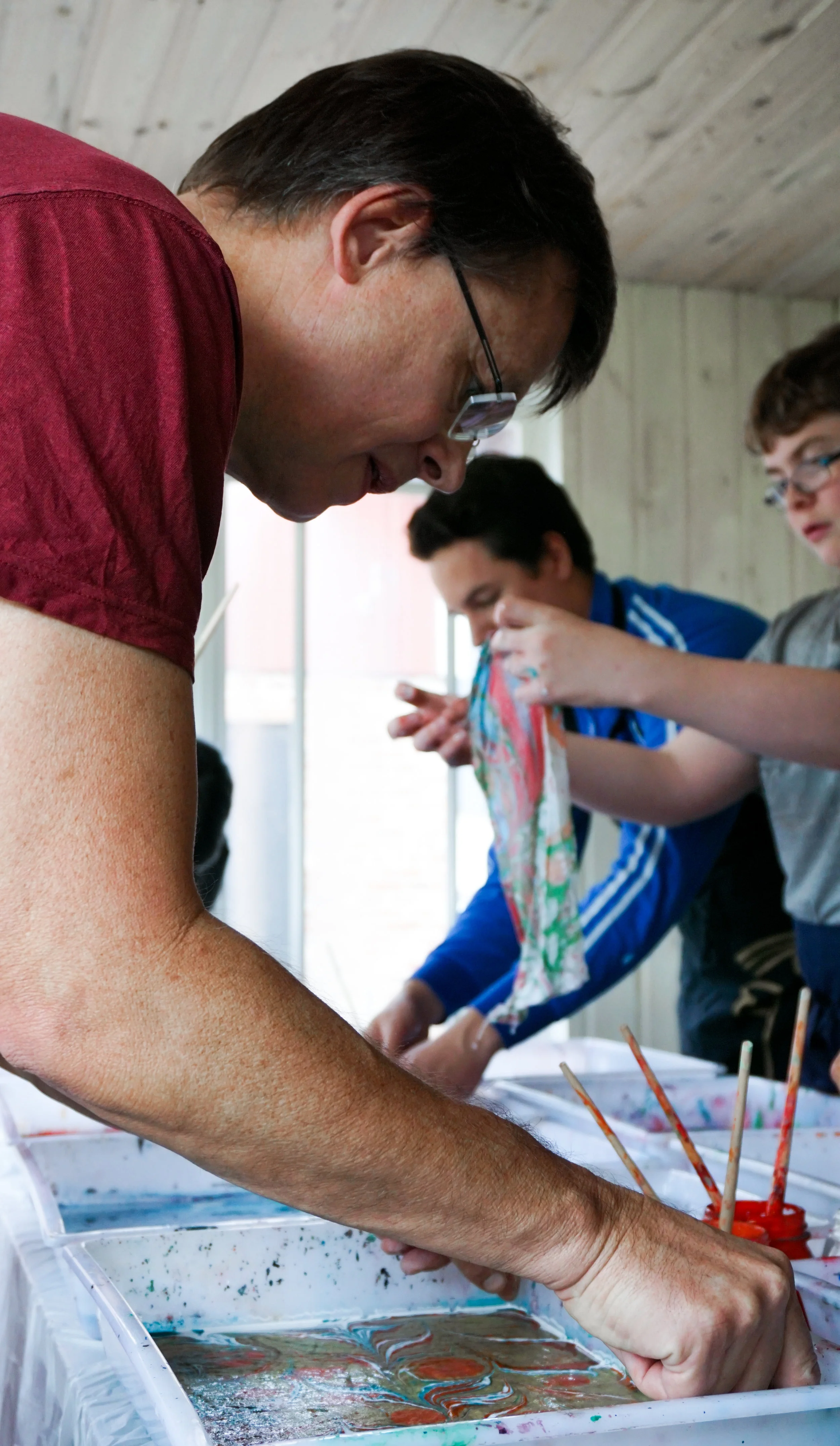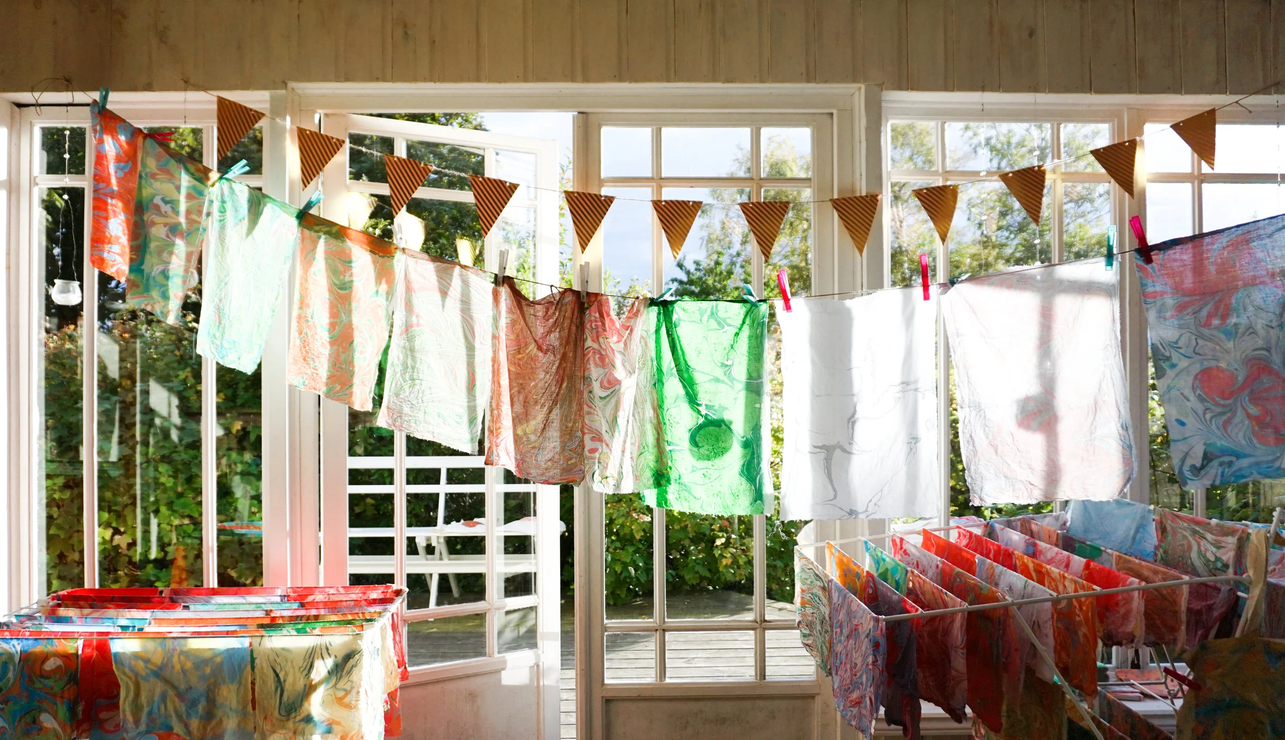The workshop took place in Lanthotell Lögnäs Gård just outside Laholm in Sweden. The villa had this lovely patio with views to the garden and to the fields nearby. MarbleMatter and I had a total of 15 participants, in the ages from 3 to 84 years.