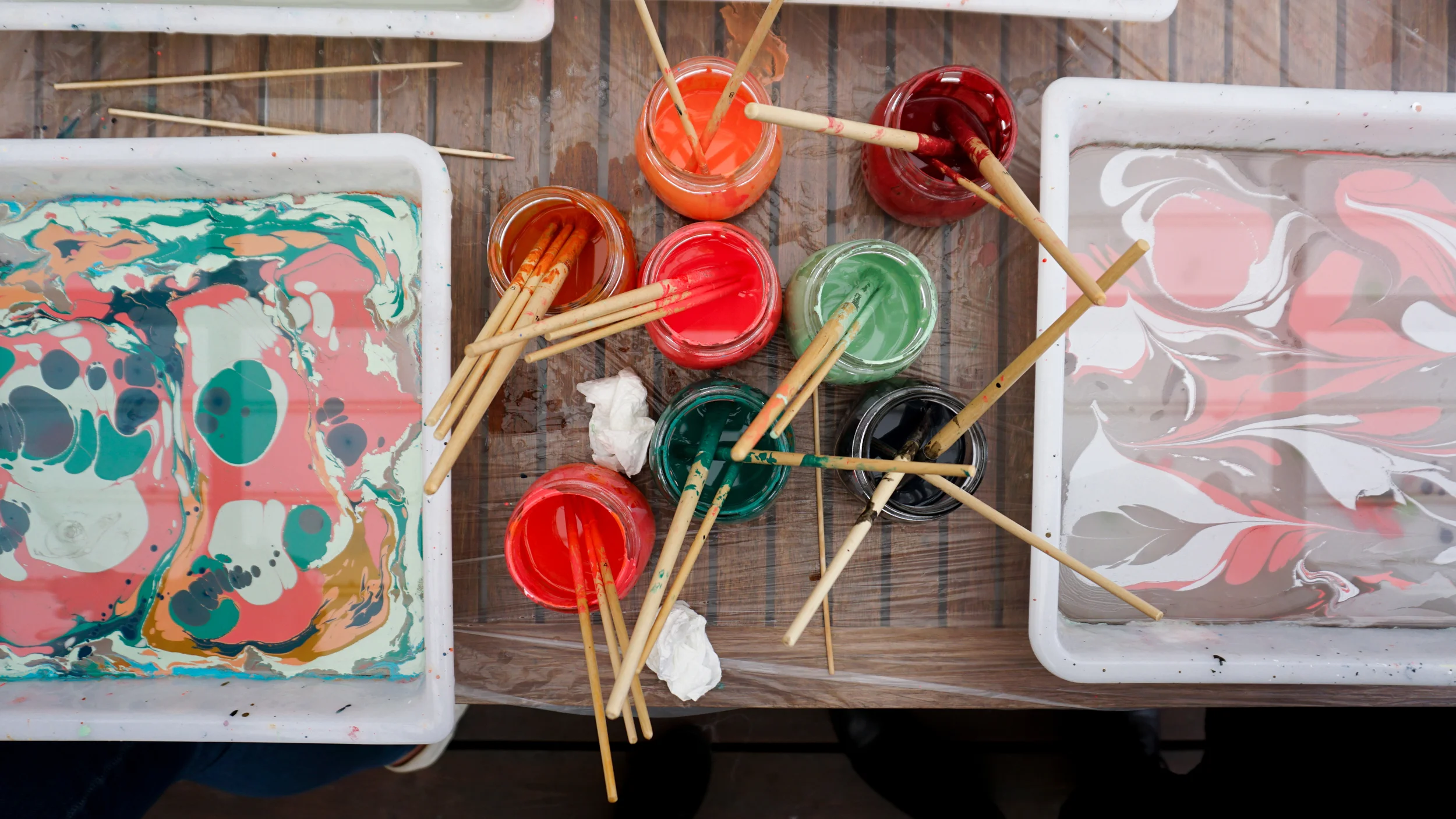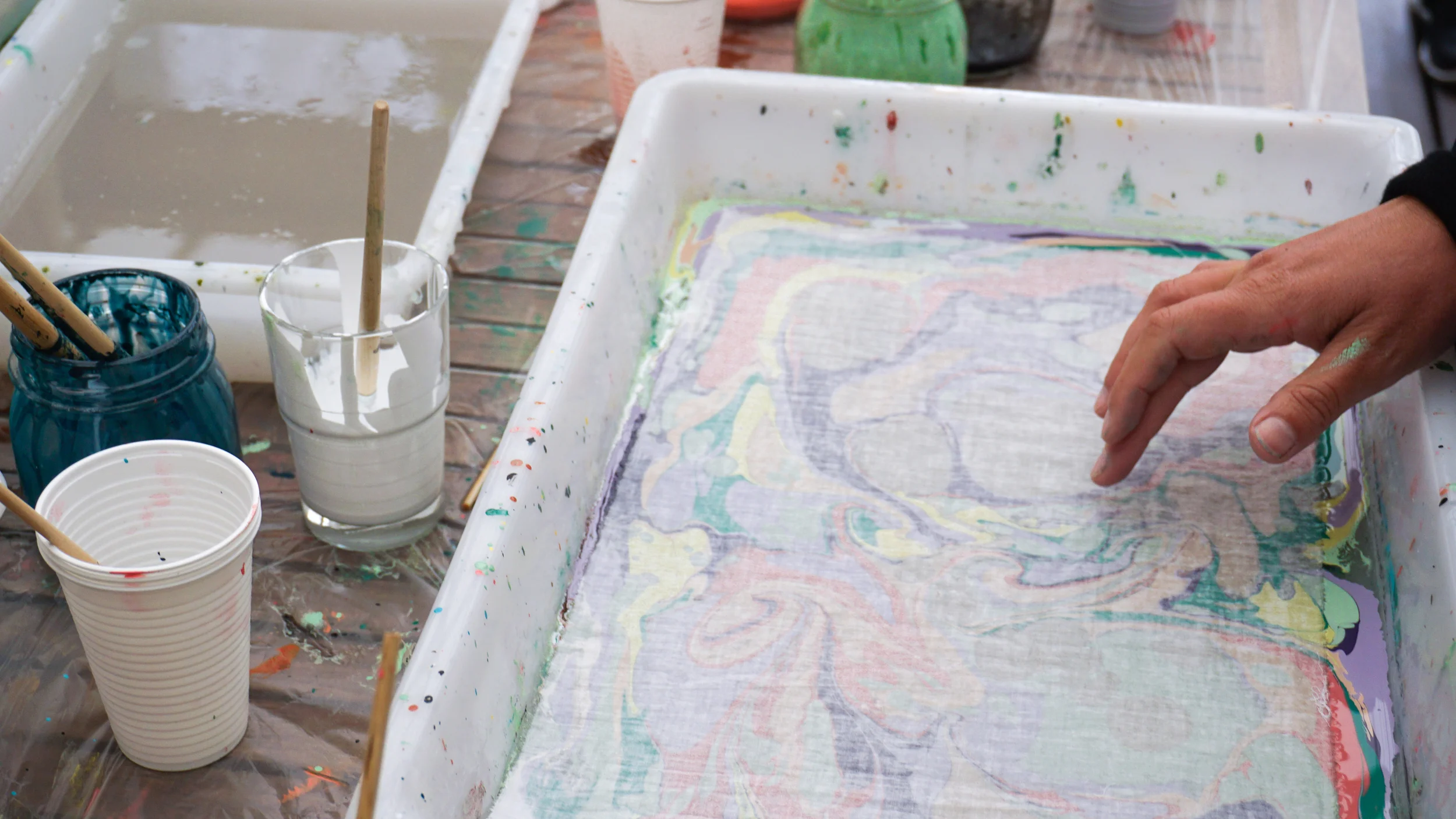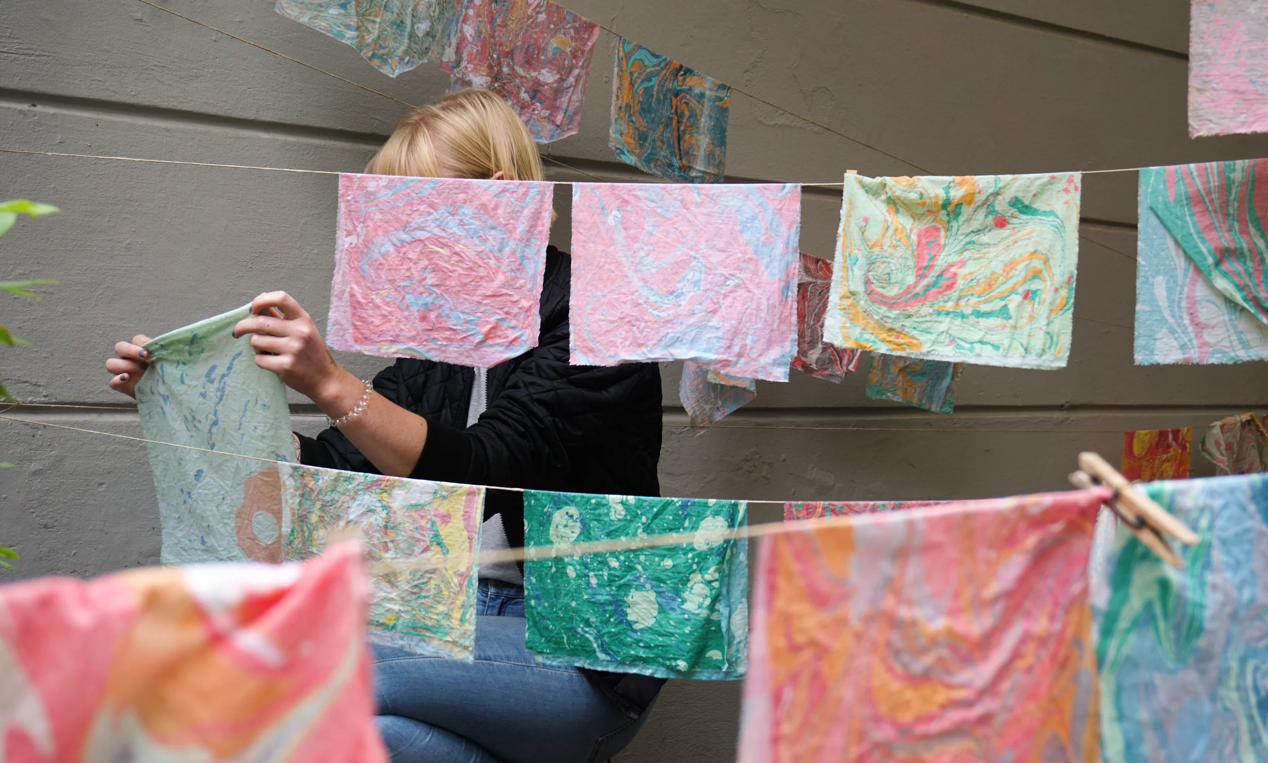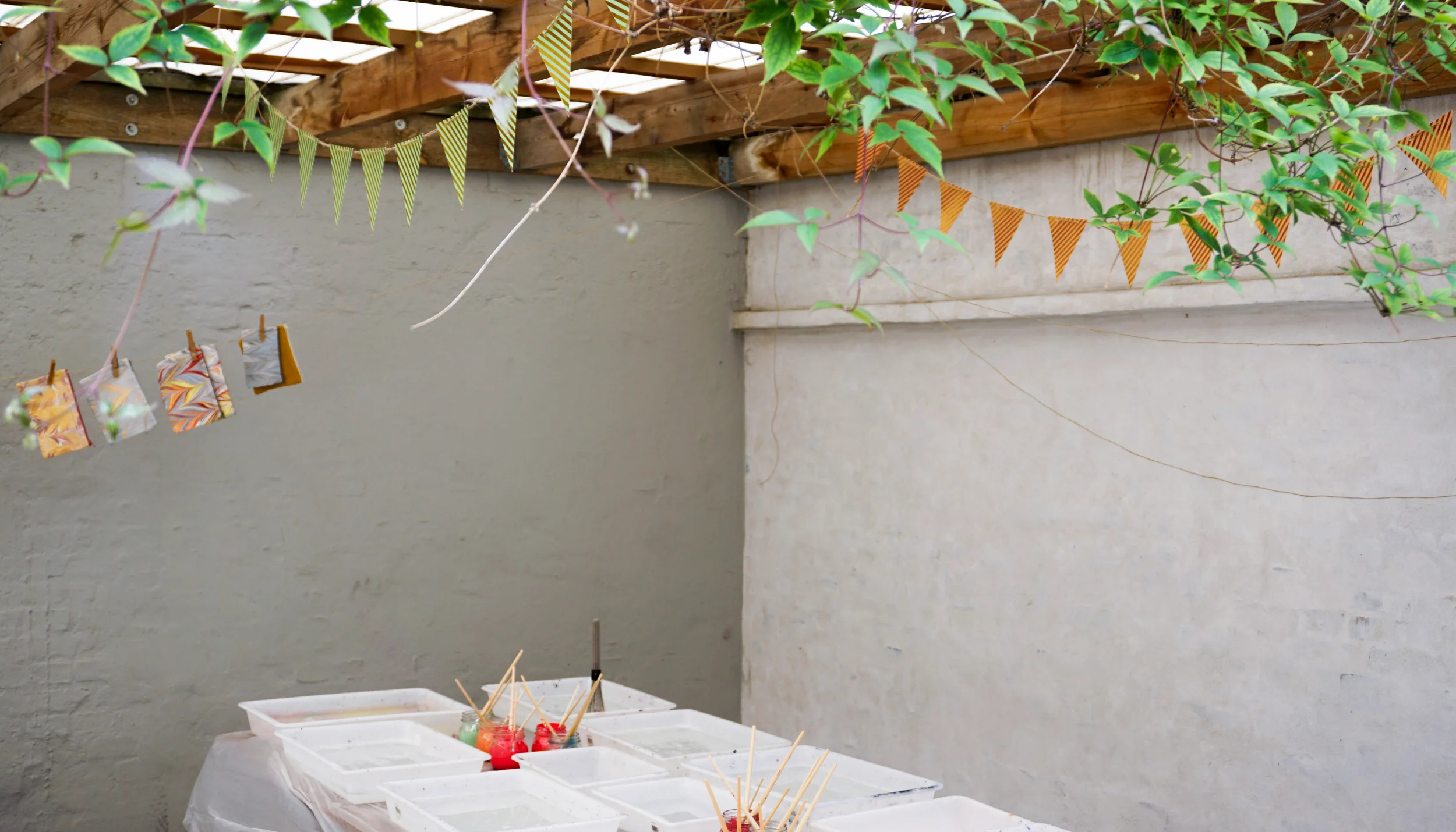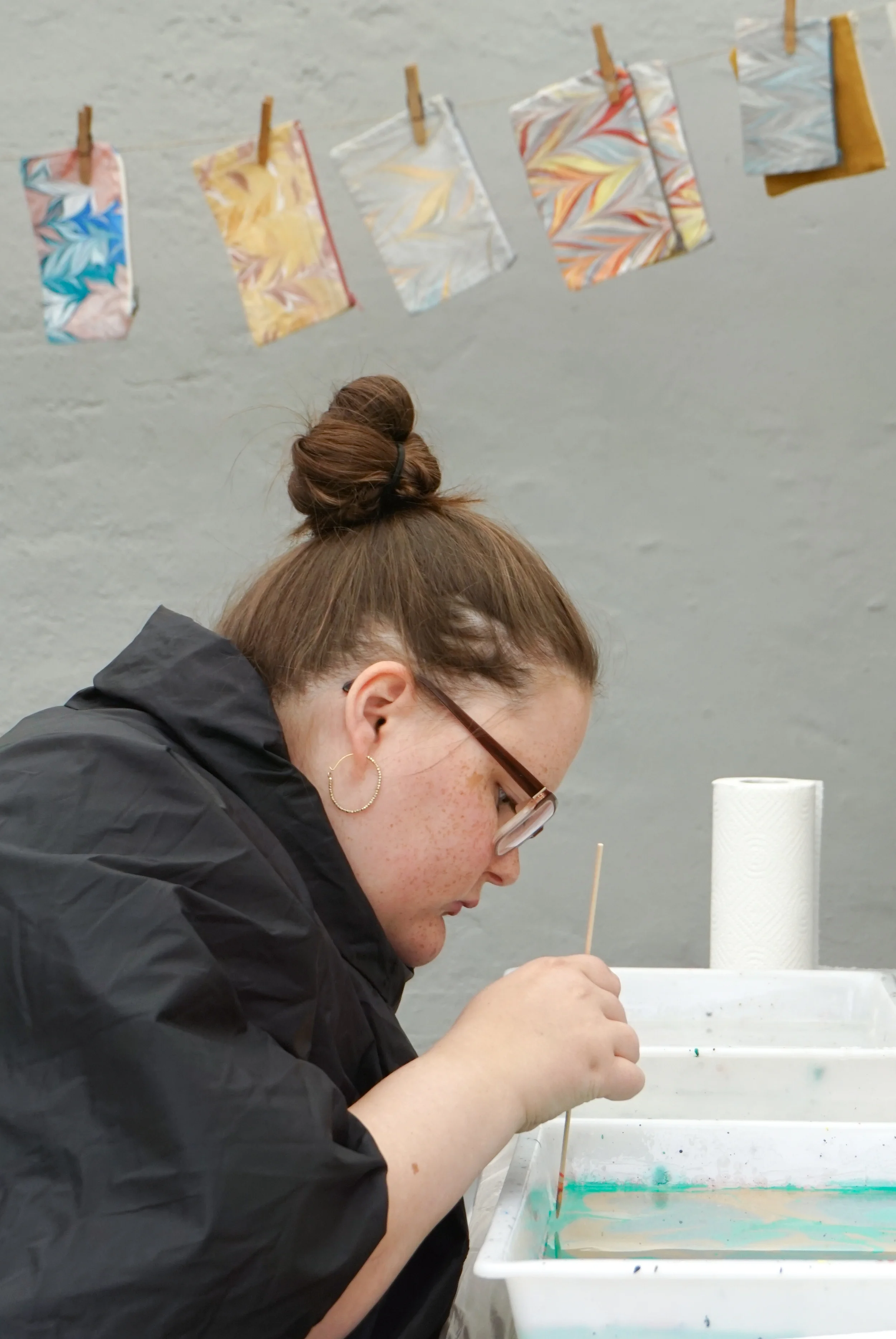 July means warm sunny days spent outside in the open! However, Northern summers can be quite unstable and when scouting for a location a few weeks back we had no idea about the weather forecasts for this day. Luckily Marble Matter and I ended up finding a cosy backyard in the heart of Østerbro with a sheltered patio, perfect for hosting an outdoor marbling workshop! So on a cloudy Saturday on the 16th of July, our participants marbled to the sound of summer rain.